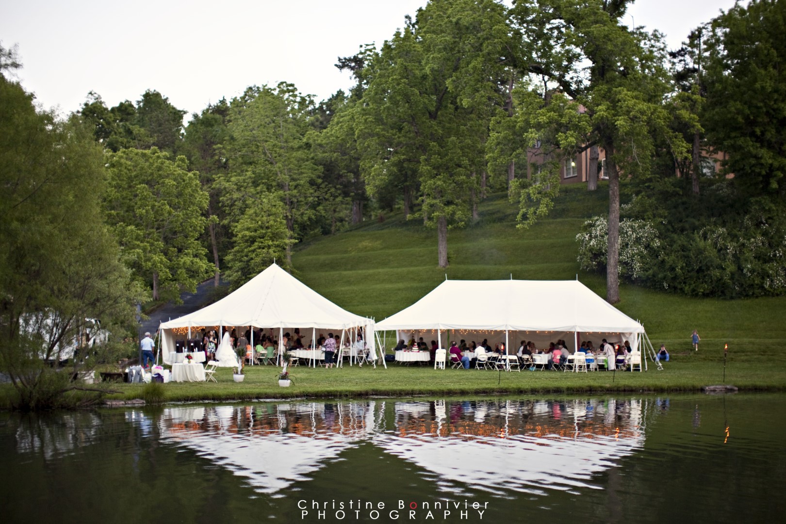 Enchanted Hills is an outdoor wedding & event venue located just a few minutes north of Springfield near Fellows Lake. Our family has been hosting uniquely beautiful weddings here since 1996. Our 3.5 million gal./day natural Spring waterfalls & pond will draw any nature enthusiast to our gorgeous estate. We host a limited number of events seasonally May – October so we are able to take great care & focus on each one. Our 1,000 square foot covered pavilion nestled amongst the spring can offer coverage in case of rain for your ceremony, a seated reception up to 75 people with room for dancing, or we offer large wedding tents for events up to 175 guests, leaving the pavilion open for your dance space. A truly magical Ozarks venue!