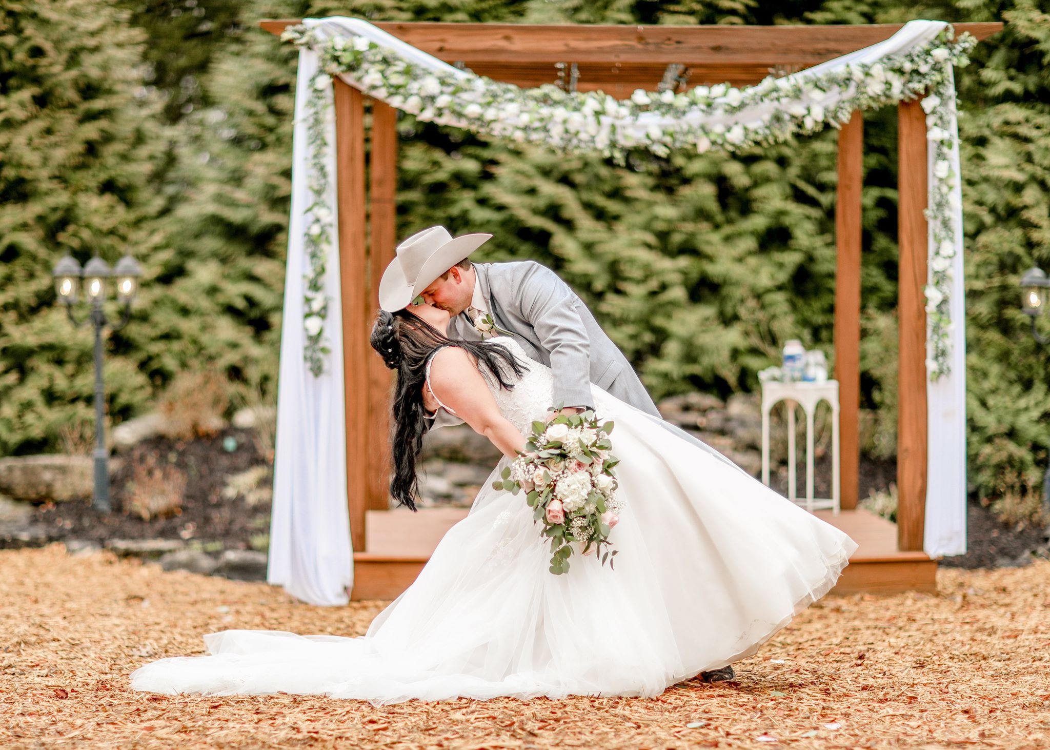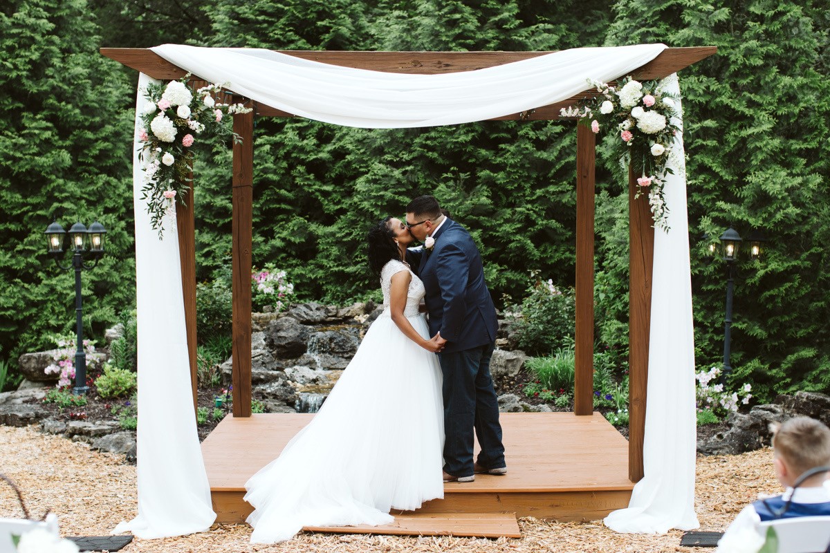 Samuel Cedars is a versatile wedding venue for both indoor and outdoor weddings! Our outdoor garden area is surrounded by beautiful evergreens and includes an amazing waterfall backdrop for your wedding ceremony. For our indoor options, we have a large building with multiple options for the ceremony including our large cedar double doors, a floor to ceiling fireplace, and more! New in 2020 is a large bridal suite that is perfect for any size of bridal party to get ready in. Whether you do an indoor or outdoor ceremony, we have endless picturesque settings for photos around the property. We offer both DIY and All Inclusive wedding packages, so give us a call and let us know how we can help with your special day!